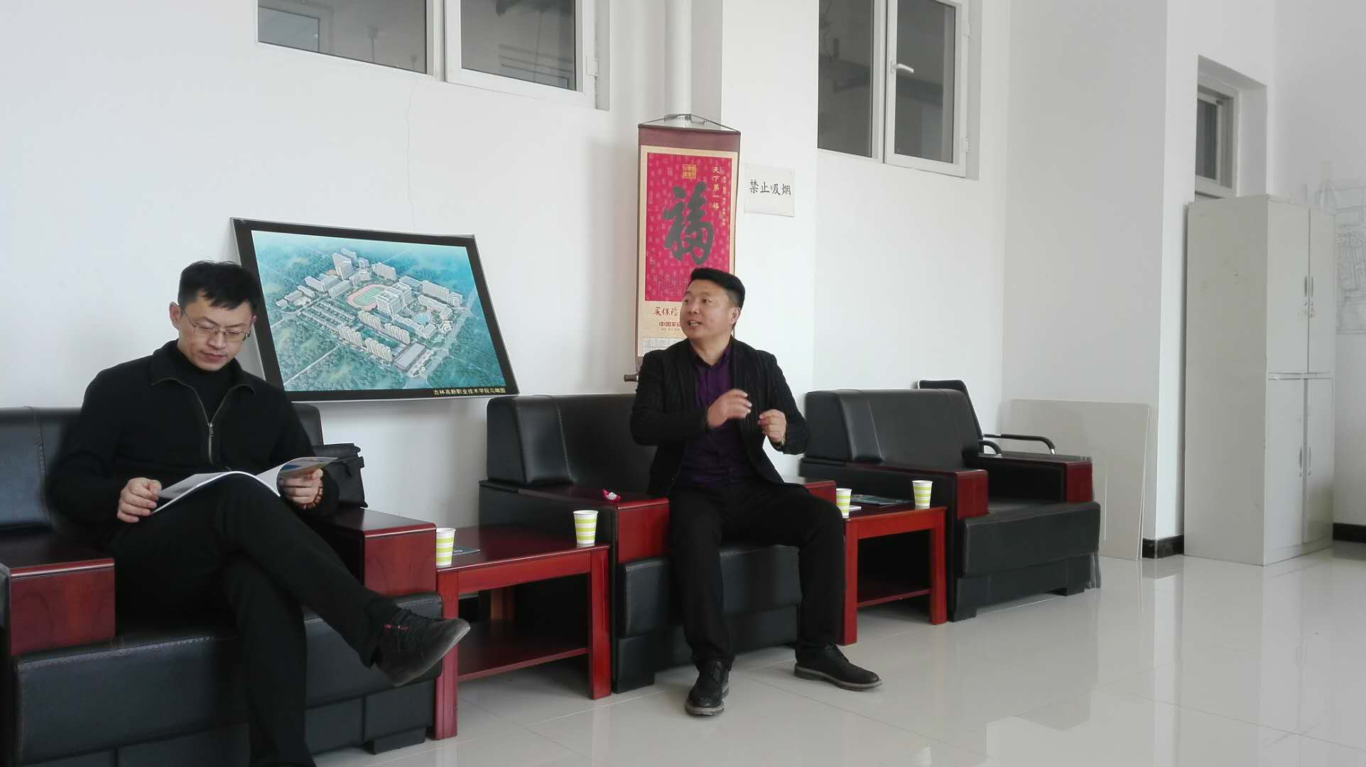 吉林省新思路教育发展有限公司王总为各校领导详细介绍了我校实践培训基地的建设、活动规划以及学生军训活动的讲解,并对公司未来的发展方向做了明确的指示。